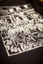 La maglia è stampata fronte e retro su Fruit of the Loom, con vestibilità regolare.